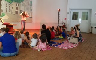 Mercredi 16 septembre à 16h00, Muriel Revollon, Conteuse de la compagnie Ziri Ziri s’est produite devant les 80 enfants de l’accueil de loisirs. Une représentation privée cette année en raison des conditions sanitaires.